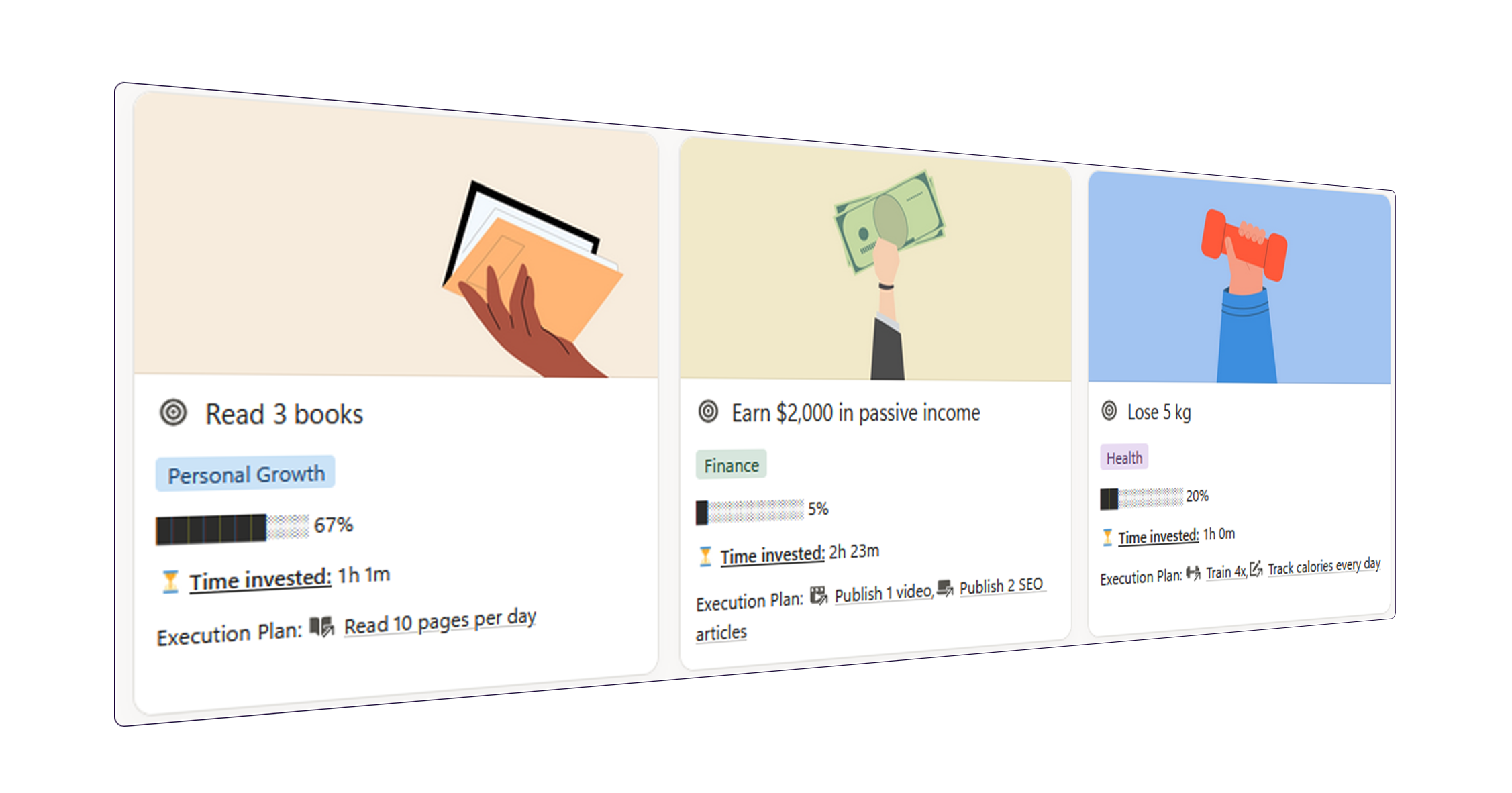 No more vague ideas or abandoned goals. This system helps you stay focused on what matters, track your progress, and actually follow through.