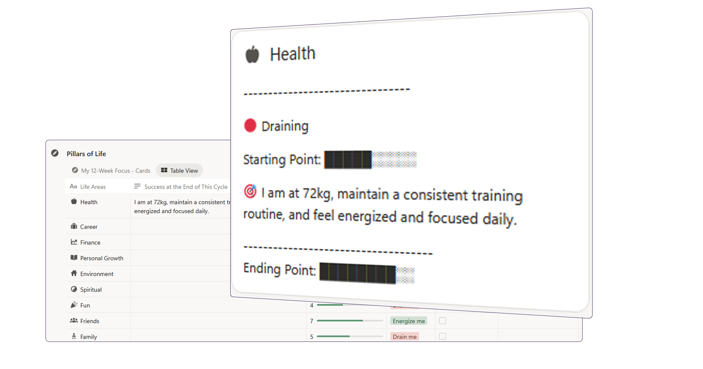 Not sure where to start? No problem. You’ll follow a clear, proven structure that helps you set up your first 12-week cycle with confidence. Built-in reflection prompts help you review, improve, and stay consistent.