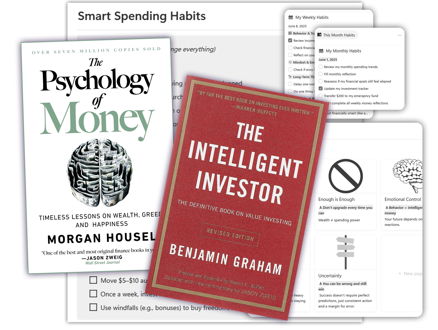 You’ll find reflection prompts, habit systems, and timeless financial insights designed to help you think long-term, stay intentional, and make smarter money decisions every day.