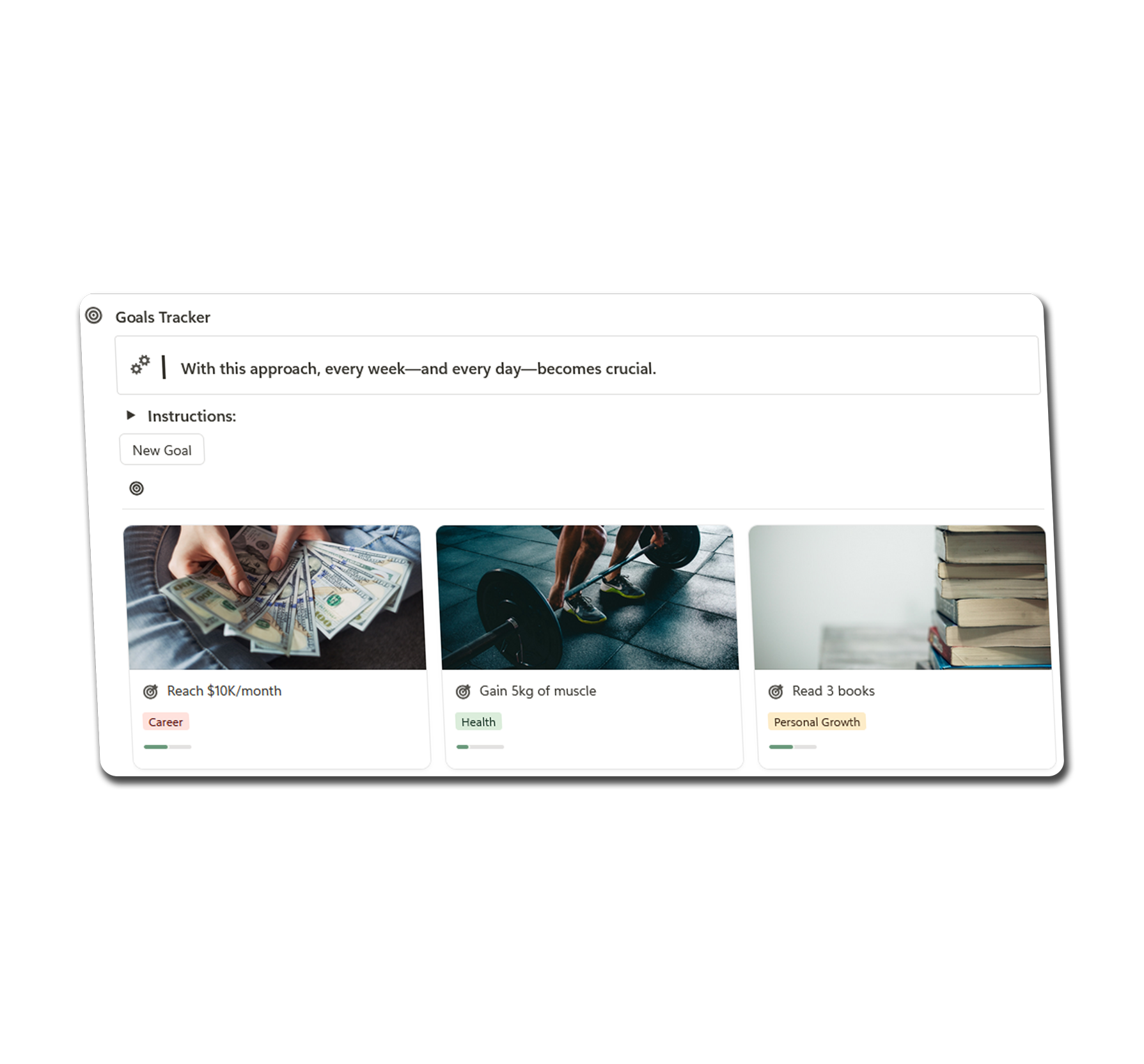 No more vague ideas or abandoned goals. This system helps you stay focused on what matters, track your progress, and actually follow through.