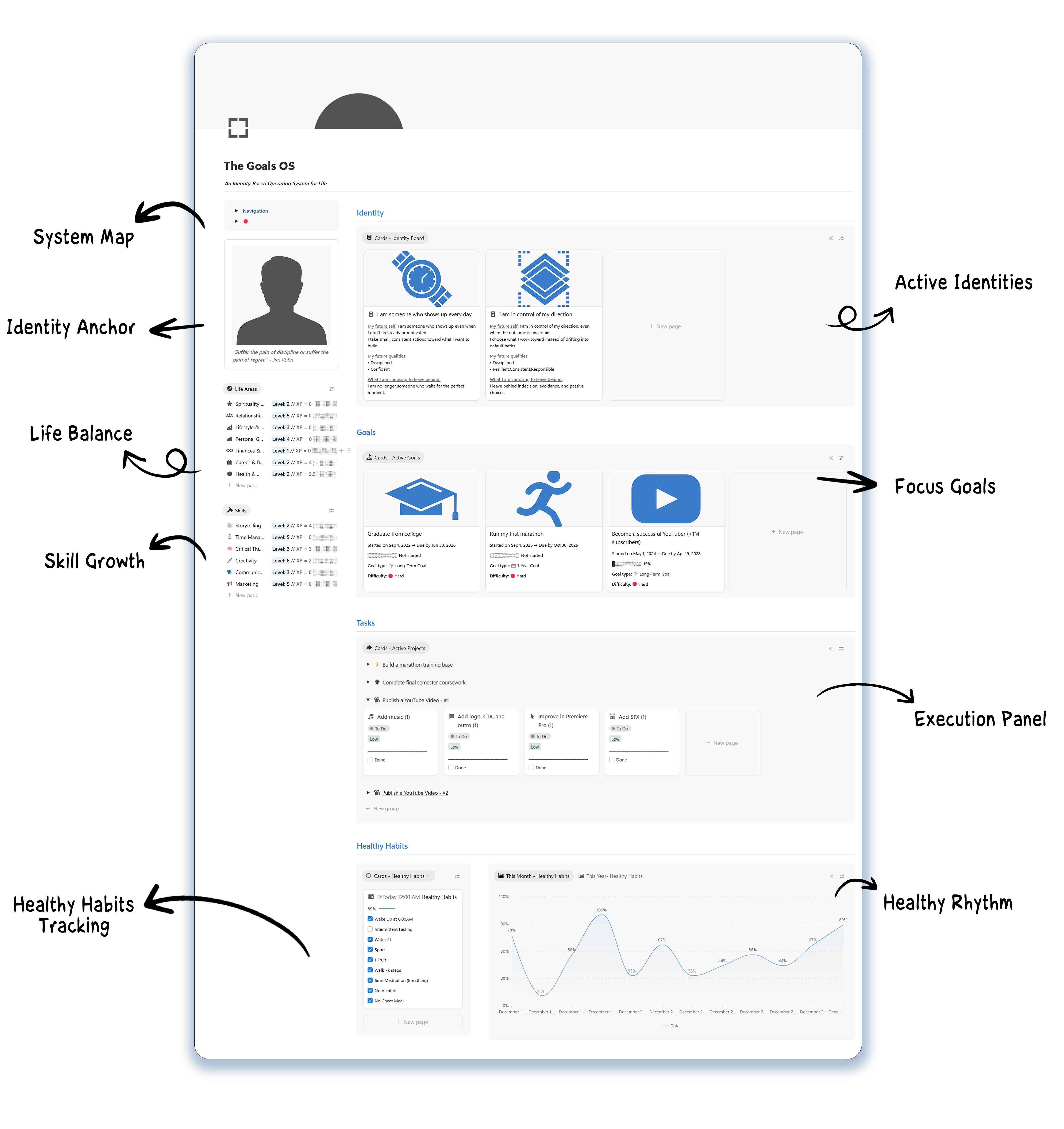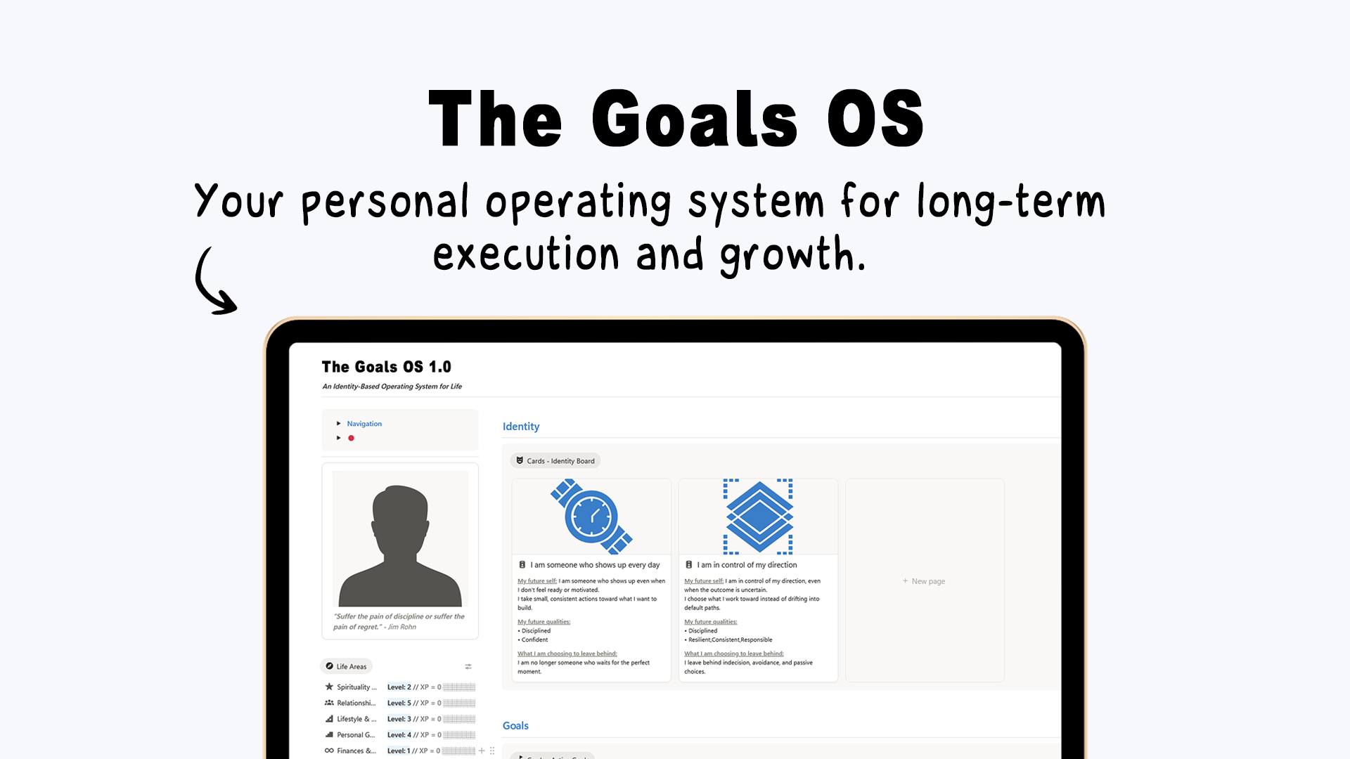 The Goals OS is an identity-based operating system for your life, built in Notion.