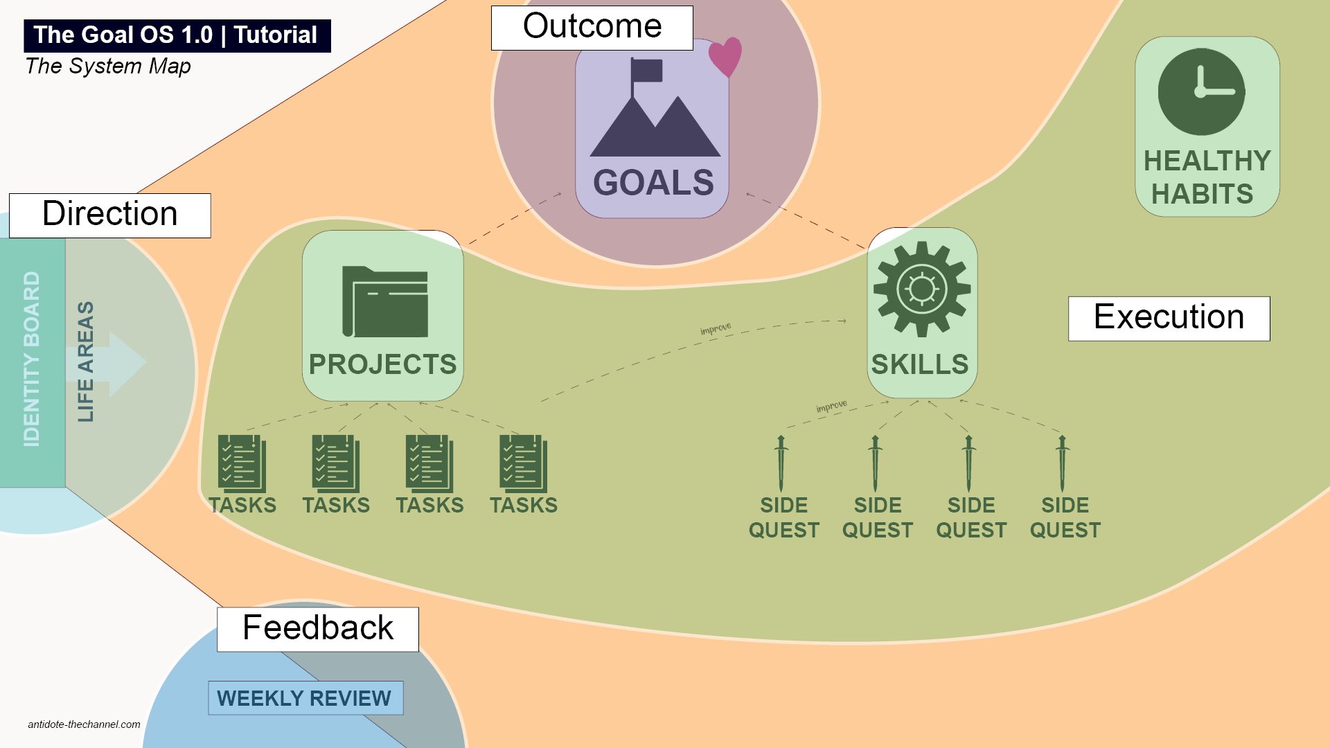 It helps you clarify who you want to become, define meaningful goals, break them into projects and tasks, build the right skills and habits, and continuously adjust through feedback.